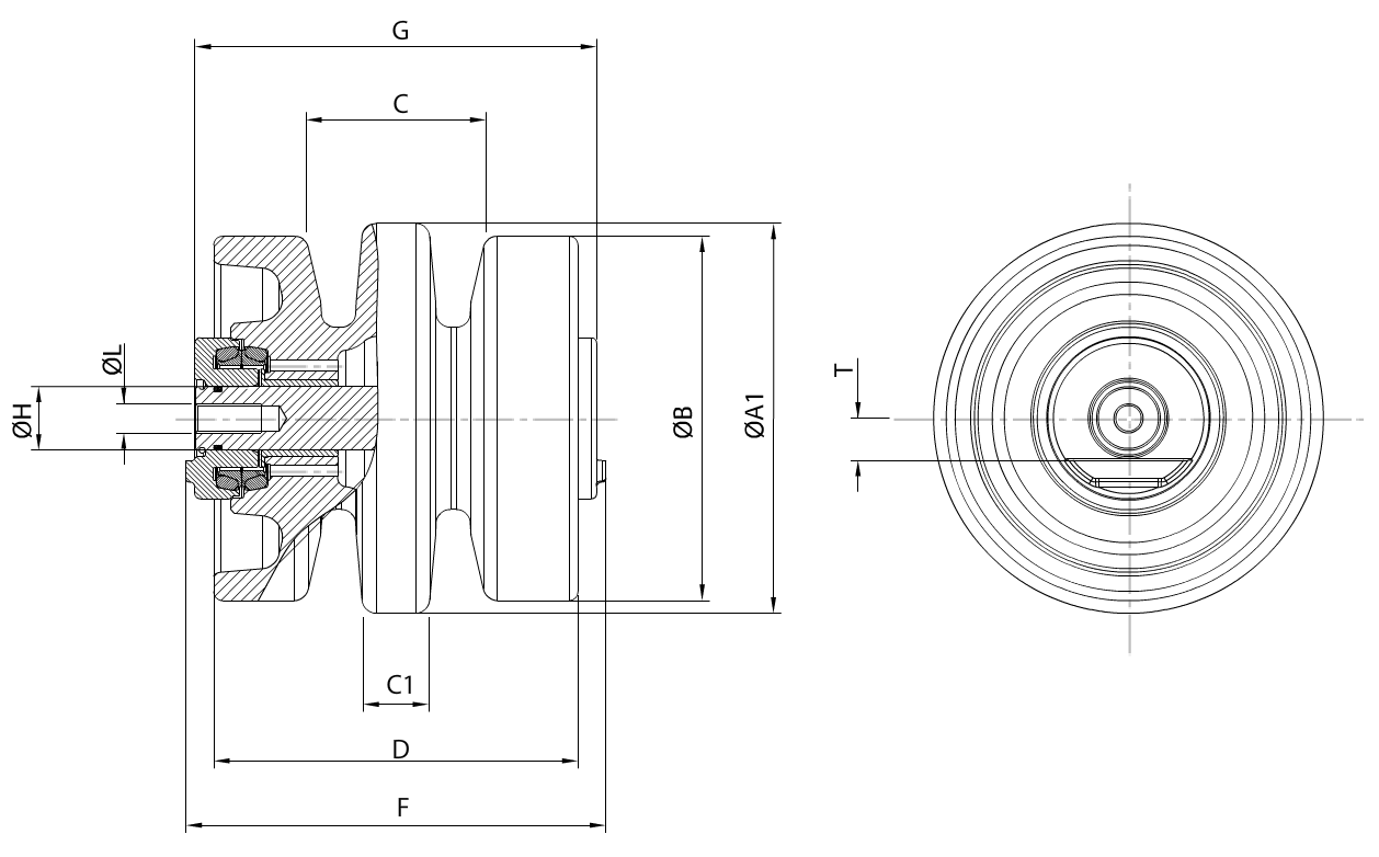 1 peremes görgő, Mini rakodógép, JOHN DEERE, CT315,BERCO ID2802,JCB 332/P5844,JOHN DEERE AT366460,VOLVO 16213288,VPI VID2802V